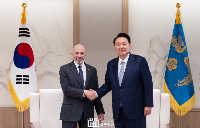 [뉴스서울] 윤석열 대통령은 4월 18일 오후 '에반 그린버그(Evan Greenberg)' 미한 재계회의 위원장을 접견했다.