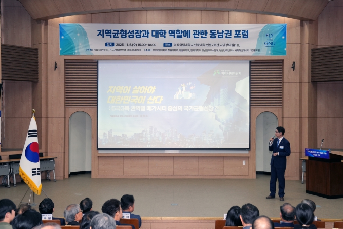 [뉴스서울] 경상국립대학교는 11월 5일 오후 3시 가좌캠퍼스 인문대학 교양강의실에서 ‘지역균형성장과 대학 역할에 관한 동남권 포럼’을 개최했다.