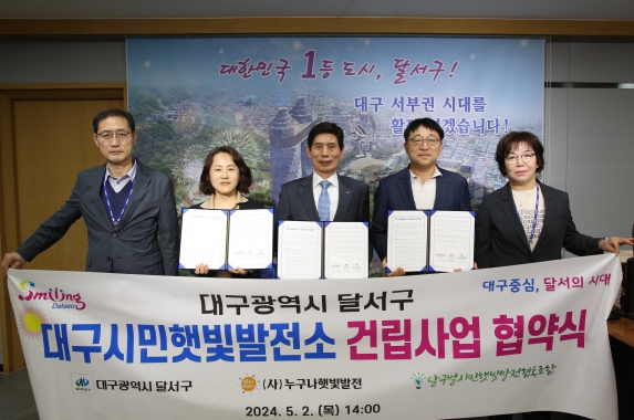 협약의 주요 내용은 건립 부지로 활용이 가능한 달서구 소재 공유부지 임대, 민관협력 네트워크 운영, 참여 조합원 모집 및 교육, 발전소 공사 및 운영·관리 등 달서구의 첫 대구시민햇빛발전소 건립에 필요한 내용이다.
