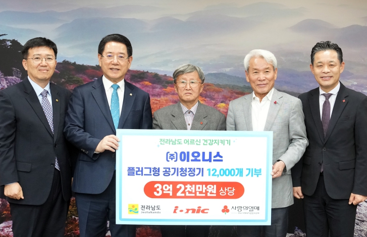 [뉴스서울] 전라남도는 11일 ㈜이오니스(대표 장석운)로부터 독거노인 생활환경 개선을 위한 플러그형 공기청정기 1만 2천 개(3억 원 상당)를 기탁받았다고 밝혔다.