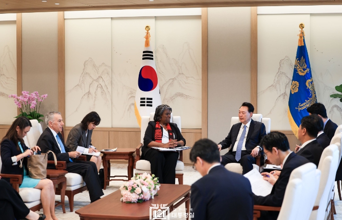 [뉴스서울] 윤석열 대통령은 4월 15일 오후 방한 중인'린다 토마스-그린필드(Linda Thomas-Greenfield)'주유엔 미국대사를 접견하고, 유엔 안보리 이사국 활동, 한미 동맹, 북한 문제 등에 대해 의견을 교환했다.