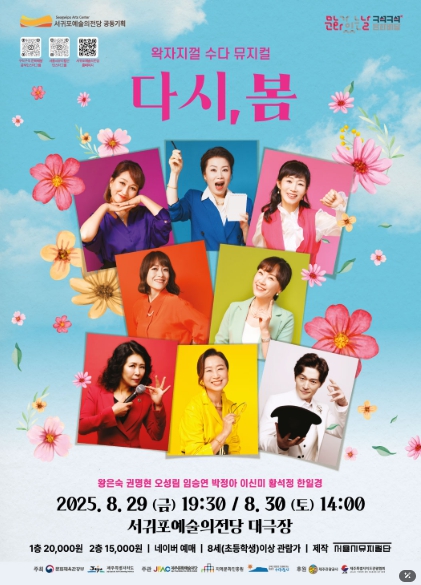 ‘다시, 봄’은 세종문화회관 서울시뮤지컬단의 대표 창작 레퍼토리 작품으로, 서귀포예술의전당과의 공동기획으로 추진된다. 누군가의 딸이자 아내, 엄마로 치열하게 살아온 50대 여성들이 서로 공감하고 연대하며 인생 2막을 꿈꾸는 이야기를 진솔하게 그려내 2022년 초연 이후 지속적인 사랑을 받고 있다.