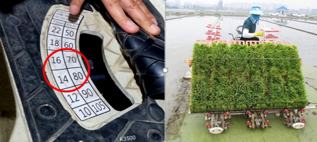 | ▲ 사료용벼 모심는 간격(30 × 14~16㎝, 3,3㎡당 70~80주) |
