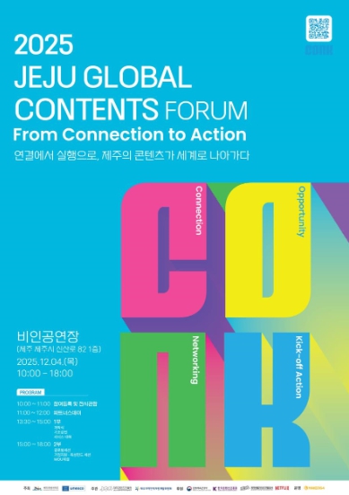 [뉴스서울] (재)제주콘텐츠진흥원은 오는 12월 4일 진흥원 BeIN;(비인) 공연장에서‘2025 제주 글로벌 콘텐츠 포럼(Jeju Global Contents Forum)’을 개최하고, 제주 토종 콘텐츠의 글로벌 시장 진출을 위한 본격적인 지원 사격에 나선다고 밝혔다.