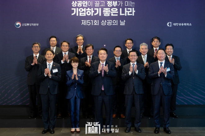 ▲ 0일 윤석열 대통령은 서울 여의도 63컨벤션센터에서 개최된 ‘제51회 상공의 날 기념식’ 행사에 참석해 우리나라 경제발전의 주역인 20만 상공인들의 노고를 격려했다. |