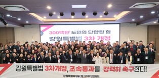 [뉴스서울] 강원특별자치도 범국민추진협의회(협의회장 최양희, 추진단장 김천수)가 11월 21일 11시, 춘천 스카이컨벤션 2층 컨벤션홀에서 강원특별법 3차개정 조속 통과 촉구 결의대회를 개최했다.