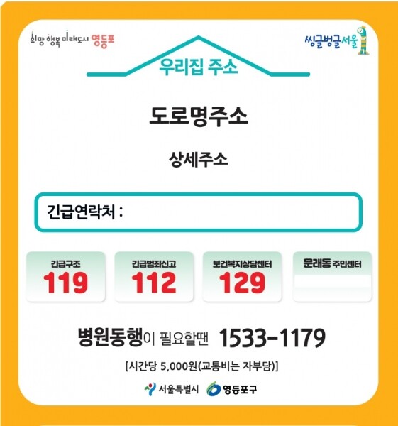 자택 주소, 긴급신고번호 한눈에…영등포구, 독거어르신 위한 도로명주소 안내 스티커 배부