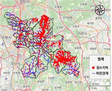 분석 결과, 강우와 홍수피해 특성이 경안천 유역에 위치한 처인구 포곡읍 등과 청미천 유역에 위치한 처인구 원삼면, 백암면 등에 집중되는 것으로 나타났다.