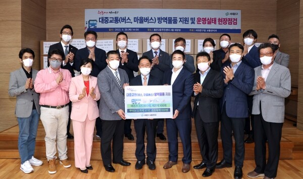구는 이달 29일 홍은2동주민센터 2층 대강당에서 관내 3개 버스 업체와 9개 마을버스 업체 관계자들이 참석한 가운데 전달식을 갖고 마스크 225,000매, 체온계 100개, 뿌리는 소독제와 손소독제 150개를 지원했다.
