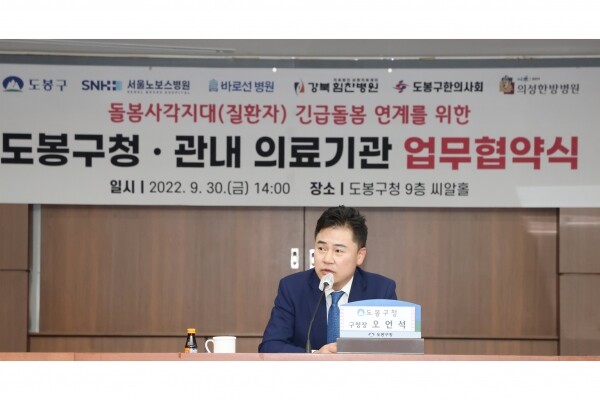 오언석 도봉구청장은 “이번 업무협약은 의료기관과 공공이 협력해 촘촘한 돌봄 안전망을 구축하는 뜻깊은 자리다 사각지대 발굴을 위해 뜻을 함께해주시는 협약병원 덕분에 질병으로 힘드신 돌봄사각지대의 구민에게 희망을 드릴 수 있게 됐다”고 말했다.