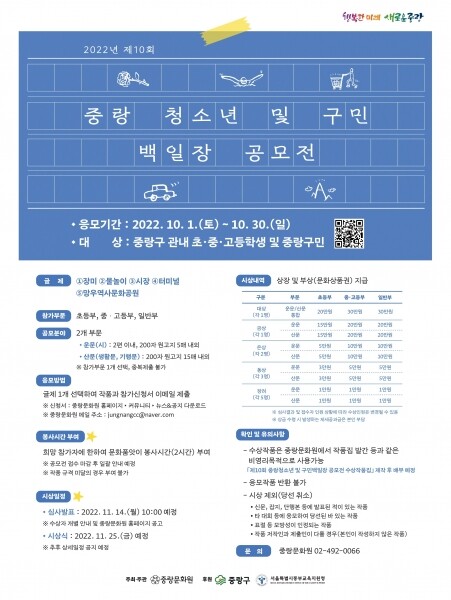 백일장 참여를 원하는 구민은 신청서와 함께 작성한 작품을 중랑문화원 이메일로 제출하면 된다.