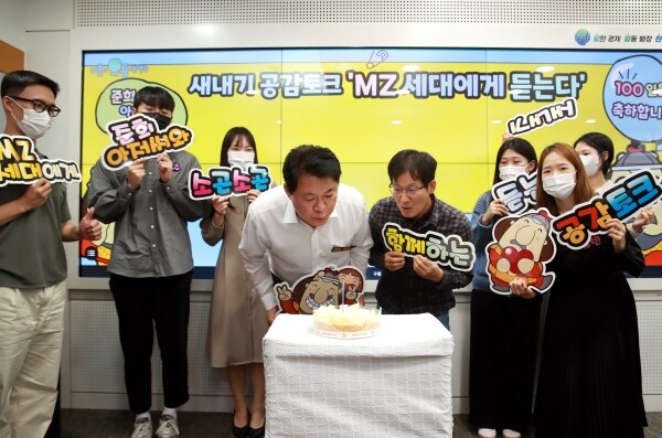 박 구청장은 별도 의례적인 기념행사 없이 ‘MZ 세대에게 듣는다’ 공감토크를 지난 4일부터 열어 입사 100일된 새내기 직원들과 함께 기념 케이크를 자르고 서로를 격려하고 축하해주는 자리를 갖고 있다.