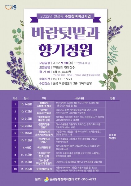 2022년 월곶동 주민참여예산사업으로 마련된 ‘바람텃밭과 향기정원’은 코로나19로 심신이 지친 주민을 위로하기 위해 지난해에 제안된 프로그램이다.