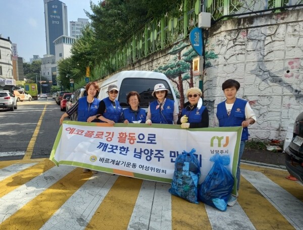 이날 환경정화활동에는 여성위원회 회원들이 참석했으며 아침 일찍 호평동 사가연 문화거리를 살피며 곳곳에 쌓여 있는 쓰레기 100리터를 줍고 분리수거했다.