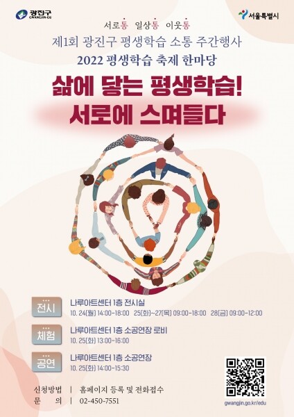 김경호 광진구청장은 “평생학습이 주는 즐거움과 기쁨을 함께 나누고 소통하길 바란다”며 “구민 누구나 배움의 기쁨을 누리며 성장할 수 있도록 평생학습 기회를 확대해 나갈 것”이라고 말했다.