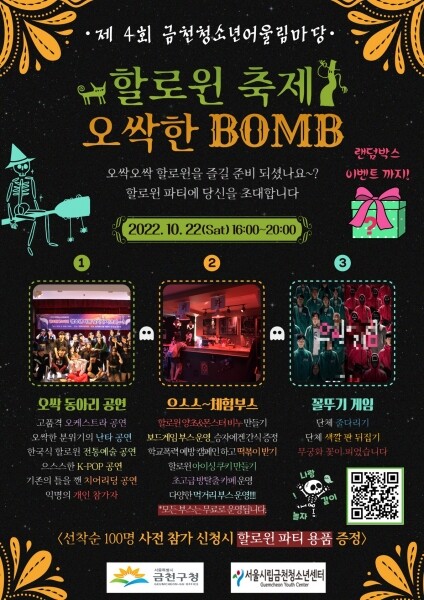 또한 모니터링 자원봉사 활동에 참여하면서 축제를 즐길 청소년은 10월 20일까지 1365 자원봉사포털에서 ‘오싹한 Bomb’을 검색해 신청할 수 있다.