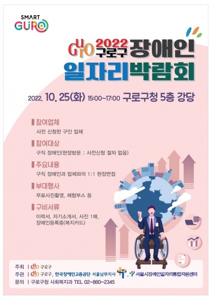 구로구가 주최하고 한국장애인고용공단 서울남부지사, 서울시장애인일자리통합지원센터가 공동 주관하는 장애인일자리박람회는 장애인 고용 우수 중소·강소기업을 발굴해 장애인 인식 개선 및 고용 기회를 확대하고 양질의 장애인 일자리를 창출하기 위해 마련했다.