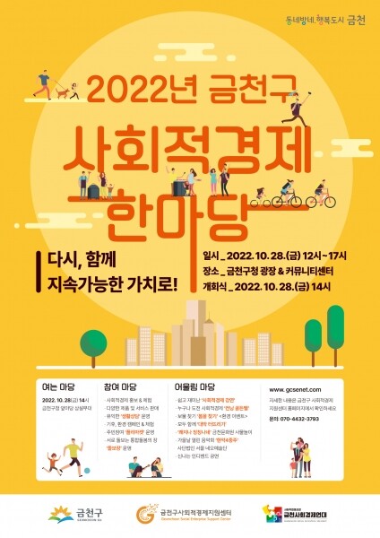 [뉴스서울] 금천구는 10월 28일 12시 금천구청 광장과 금나래 중앙공원에서 ‘2022년 금천구 사회적경제 한마당’을 개최한다.
