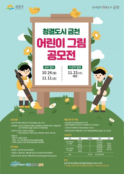 [뉴스서울] 금천구는 11월 11일까지 ‘청결도시 금천 어린이 그림 공모전’을 개최한다고 밝혔다.