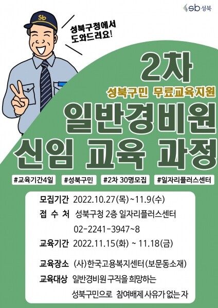 성북구, 구민 대상 일반경비원 취업지원 프로그램 운영