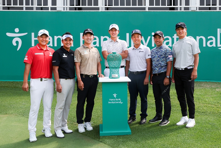 1번홀(파4) 티잉 그라운드와 18번홀(파5) 그린에서 진행된 이날 포토콜에는 ‘디펜딩 챔피언’ 양지호(35)를 비롯해 본 대회 ‘초대 챔피언’이자 하나금융그룹의 서브 후원을 받고 있는 박상현(41.동아제약), 주최사 ‘하나금융그룹’ 소속 함정우(30), 한승수(38)와 일본 투어 6승의 히가 카츠키(29), 이나모리 유키(29), 히라타 켄세이(23) 등 총 7명의 선수가 참석했다.