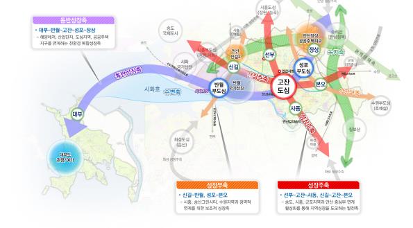 생활권은 반월산업동력, 중앙행정중심, 대부해양레저, 상록에코정주 총 4개 권역으로 구분되며, 각 권역은 고밀복합역세권개발, 친환경주거, 4차산업 기술육성, 해양관광레저 등의 발전 전략을 포함하고 있다.