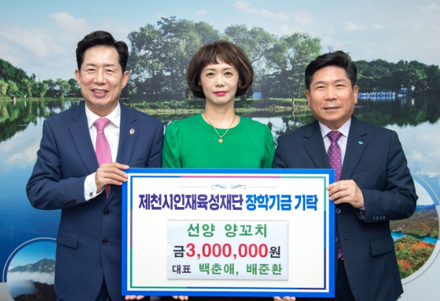 이날 기탁식에서 배대표는“저도 제천지역에서 태어나고 성장하면서 많은 도움을 받고 있다.”며“작은 정성이 지역의 인재를 키우는데 조금이나마 보탬이 되길 바란다.”고 말했다.