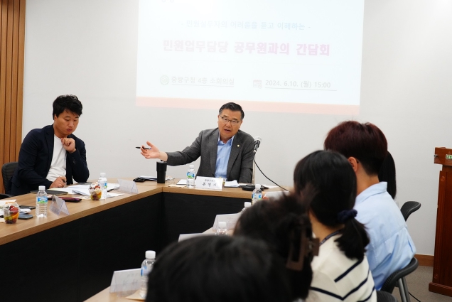 이날 간담회에서는 구청, 동주민센터의 민원담당 직원이 참석해 일선에서 민원을 처리하며 겪었던 고충사항에 대해 자유롭게 이야기를 나누며 소통하는 시간을 가졌다.