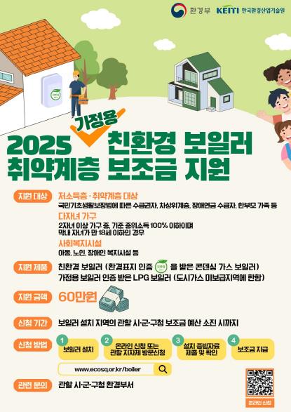 [뉴스서울] 경기도는 올 연말까지 기후위기 취약계층을 대상으로 친환경 보일러 2,258대(총 13억 5,480만 원 지원)의 설치비를 1대당 최대 60만 원씩 지원한다.