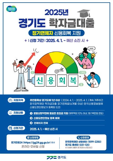 [뉴스서울] 경기도가 4월 1일부터 ‘2025년 학자금대출 장기연체자 신용회복 지원’ 접수를 시작한다.