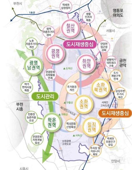 재생권역을 기존 5개권역에서 8개권역으로 확대해 행정동 중심의 권역구분을 보완하고 상위계획, 실제 생활권, 지형지물 및 간선가로 등을 반영할 수 있도록 했다. 또한 소하2동을 활성화 지역으로 신규 지정해 남북간 도시재생 역량이 균형있게 배분되도록 했다. 아울러 도시재생지원센터를 확대해 도시재생 거버넌스 구축․운영 지원 등 활성화를 통한 실행력을 확보토록 했다.