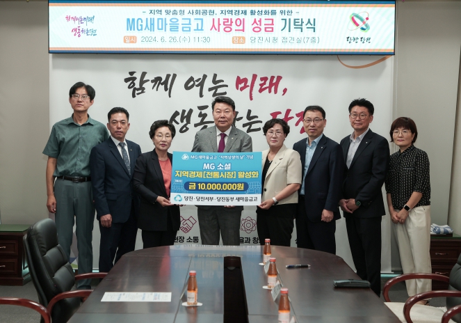 오성환 당진시장은 “새마을금고의 값진 성금은 경제 침체 속 어려움을 겪고 있는 지역사회 상인들에게 큰 힘이 될 것이며, 당진시도 지역경제 발전을 위해 최선을 다할 것이다”라고 밝혔다.