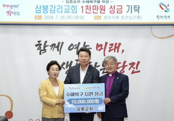 [뉴스서울] 삼봉감리교회에서는 25일 당진시청을 방문해 집중호우 수해복구를 위한 성금 1,000만 원을 전달했다.