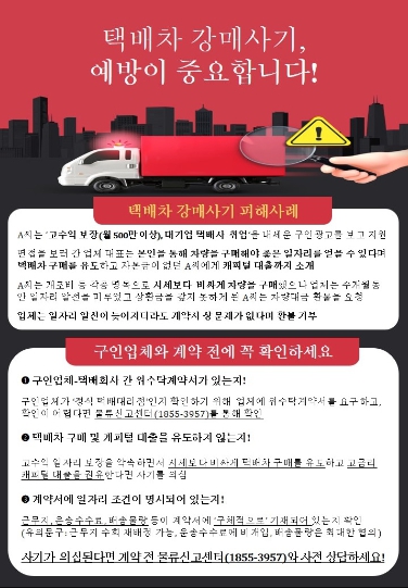 한편, 국토부는 구직자들이 택배차 강매사기로 인한 피해를 예방하기 위해서는 계약 전 다음 사항을 반드시 확인해야 한다고 당부했다.