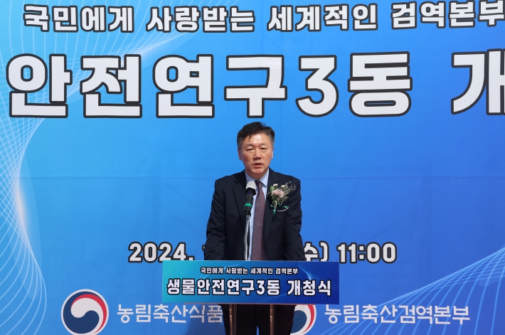 [뉴스서울] 농림축산검역본부는 10월 2일 경북 김천 소재 본부에서 아프리카돼지열병 백신 개발에 박차를 가할 생물안전연구3동의 개청식을 개최했다.