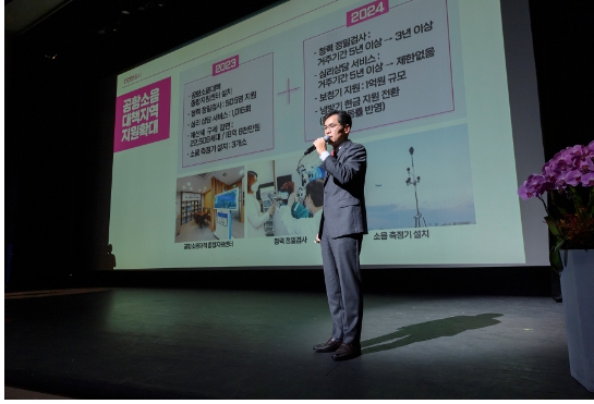▲ 올해 1월 신년인사회에서 공항소음대책지역 지원확대 방안에 대해 설명중인 이기재 양천구청장 |