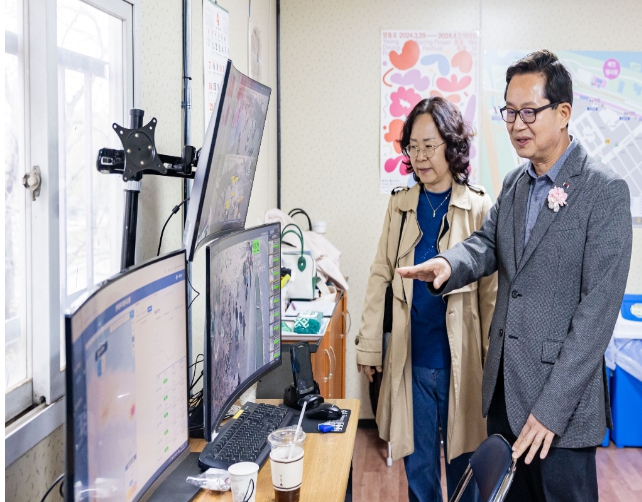▲ 봄꽃축제의 현장 밀집도를 모니터링하고 있는 최호권 영등포구청장 |