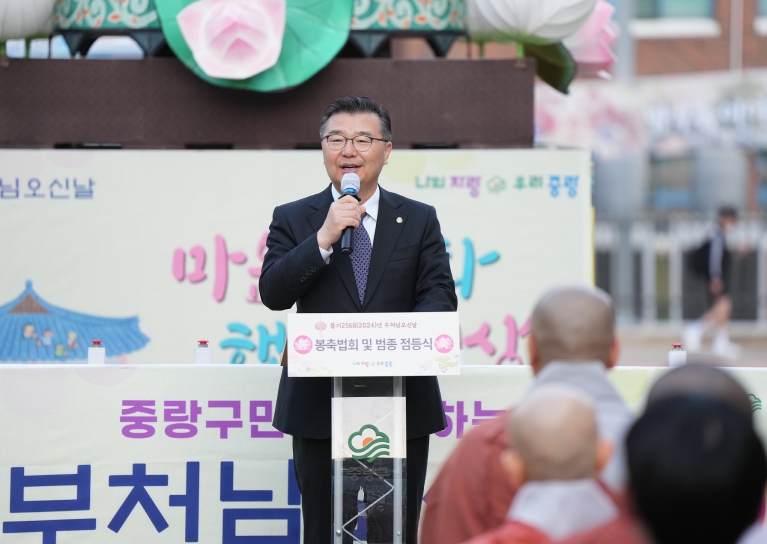 류경기 구청장은 “매해 지역사회를 위해 좋은 말씀과 따뜻한 손길을 전해주시는 중랑구사암연합회에 감사드린다”며 “불기2568년 부처님오신날을 맞이하여 등에 불을 밝힘으로써 우리 구민의 마음에 평화와 행복이 깃들고 온 세상에 부처님의 자비와 은혜가 넘치기를 바란다”고 말했다.
