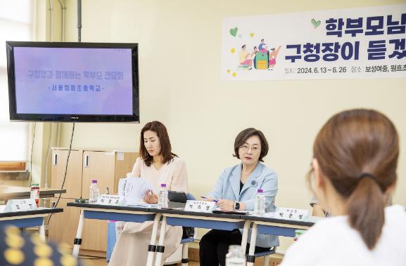 ▲ 박희영 용산구청장이 지난달 25일 청파초 학부모 간담회를 진행 중이다 |