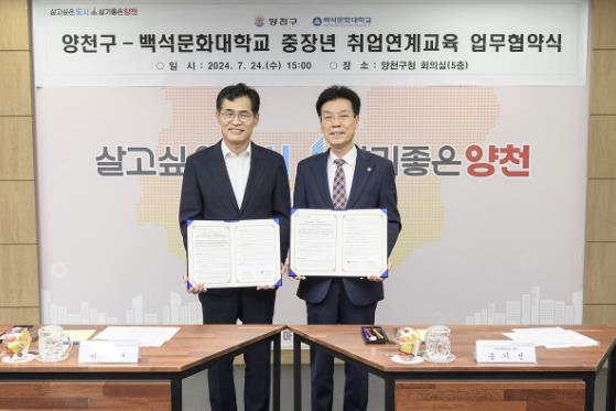 ▲ 양천구-백석문화대학교 중장년 취업연계교육 업무협약식 사진 |