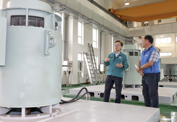 ▲ 유성훈 금천구청장이 시흥빗물펌프장에서 빗물펌프를 점검하고 있다 |
