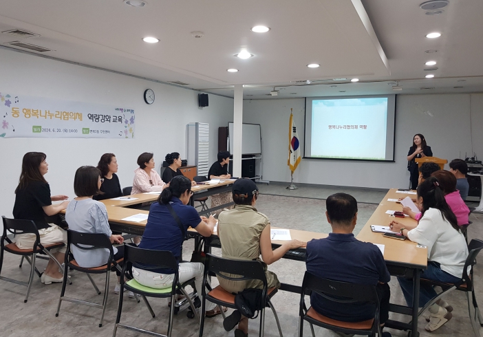 이번 역량강화 교육은 전문 강사를 초빙해 ▲행복나누리협의체의 역할 ▲복지사각지대 발굴 ▲사례별 주민 대화법 ▲사회적 고립가구 이해와 사례 공유 등 행복나누리 협의체 위원들의 실무에 도움이 되는 다양한 주제로 이루어졌다.