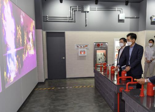 ▲ 양천생활안전체험관을 방문해 안전교육 체험 중인 이기재 양천구청장 |