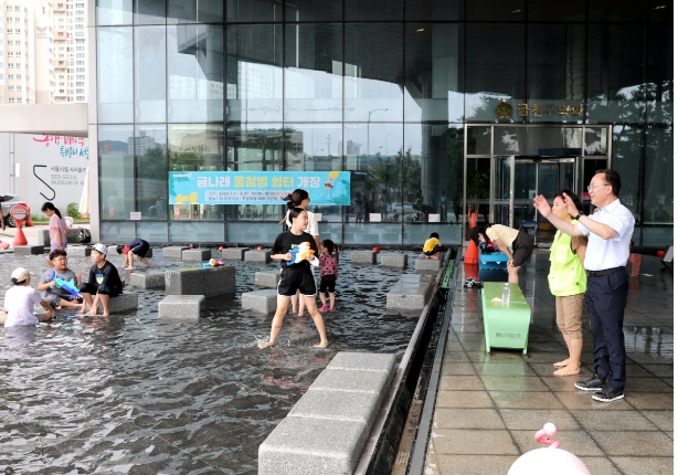 금천구는 청사 내 물놀이 시설 ‘금나래 물첨벙 쉼터’를 6월 29일부터 8월 25일까지 운영한다고 밝혔다.