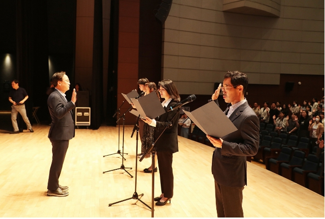 유성훈 금천구청장과 간부 공무원, 신규임용자, 부패 취약분야 담당자 등 500명의 공직자가 참여했고 직무수행과 청탁 근절을 위한 청렴 실천 결의문 낭독과 선서로 교육이 시작됐다.