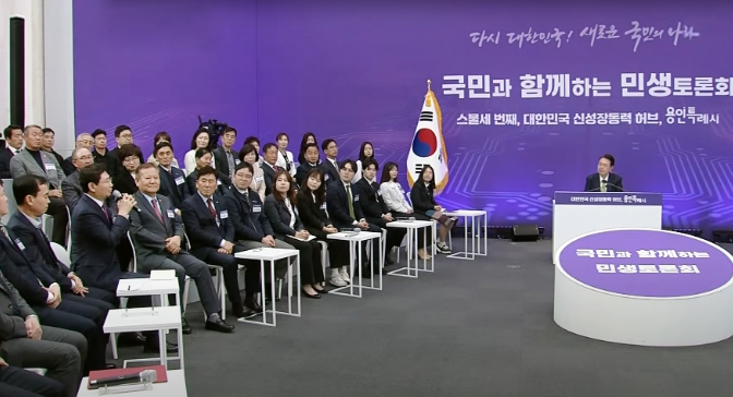 ▲ 지난 25일 용인특례시청에서 개최된 국민과 함께하는 민생토론회에서 이상일 용인특례시장이 특례시에 필요한 권한 이양을 요청했다.(사진-KTV 갈무리) |