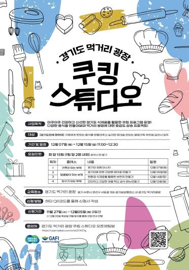 12월에는 요리 인플루언서, 전문 제빵사 등을 초청해 ▲경기미 김밥 마스터(7일) ▲친환경 식재료를 활용한 브런치 만들기(8일) ▲경기미로 만든 건강한 베이킹 만들기(14일) ▲간단하고 건강한 제철 학교 급식 메뉴 만들기(15일) 등 네 차례의 쿠킹 스튜디오를 진행한다.