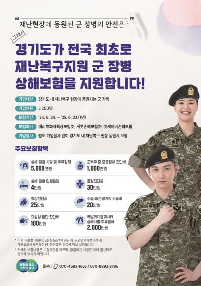 ▲ 2024년 경기도 재난복구지원 군 장병 상해보험 안내 포스터 |