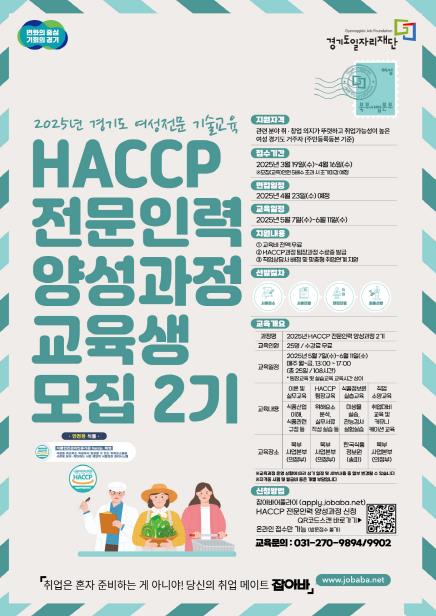 [뉴스서울] 경기도는 2025년 여성전문기술교육 식품안전관리인증기준(해썹·HACCP) 전문인력 양성과정 2기 참여자를 오는 16일까지 모집한다고 밝혔다.