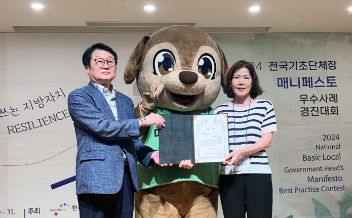 ▲ 매니페스토 우수사례 경진대회에서 담당 부서장이(주은지 건강증진과장) 최우수상을 수상받고 있다 |
